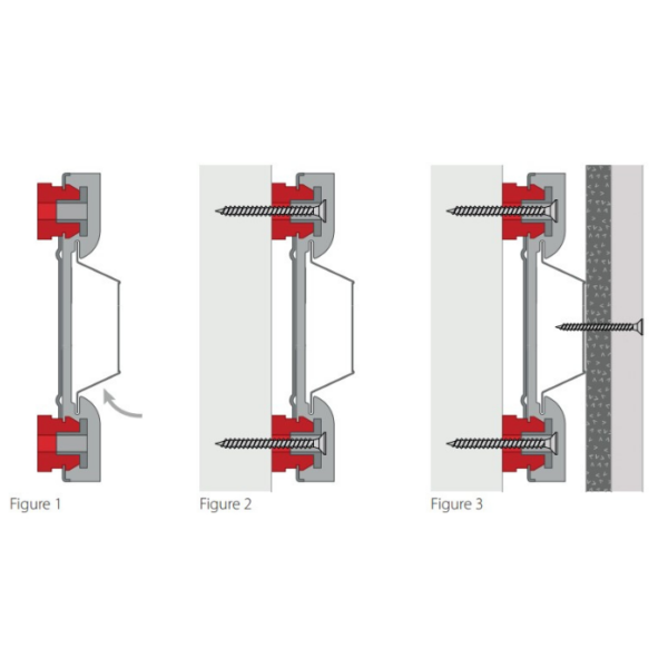 Figure 2: The AcoustiClip is fixed in place using a standard screw 55mm minimum length. If you are fitting to a surface that requires drilling, use standard brown wall plugs and screws.